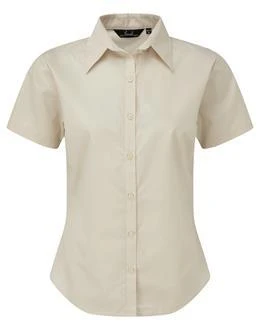 Eine Damen-Kurzarmbluse mit halb tailliertem Schnitt, erhältlich in 27 Farben. Die Bluse verfügt über einen weichen Kragenstil mit Abnähern an Brust und Rücken sowie einen abgerundeten Saum für ein wirklich attraktives Arbeitskleidungsstück.