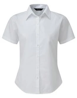 Eine Damen-Kurzarmbluse mit halb tailliertem Schnitt, erhältlich in 27 Farben. Die Bluse verfügt über einen weichen Kragenstil mit Abnähern an Brust und Rücken sowie einen abgerundeten Saum für ein wirklich attraktives Arbeitskleidungsstück.