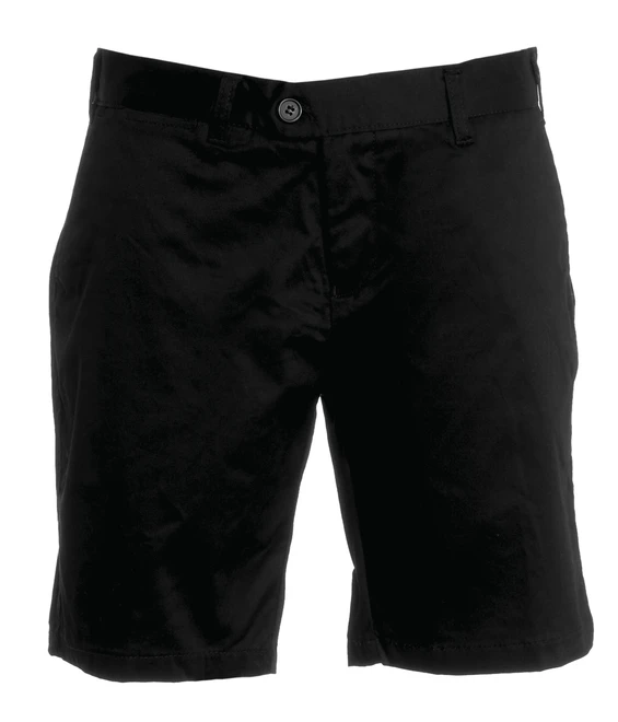 Damen-Bermudas, klassischer Schnitt, Hosenschlitz mit Reißverschluss und Knopf, Bund mit Gürtelschlaufen, mit zwei französischen Vordertaschen und zwei Gesäß-Leistentaschen mit Knopf