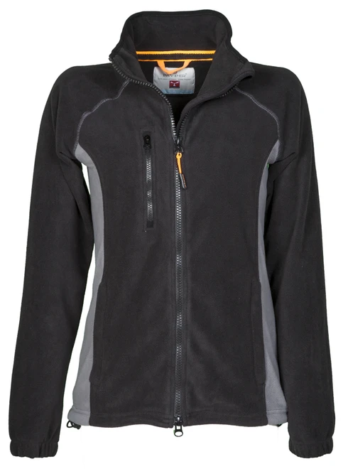 Zweifarbige taillierte Damen-Fleecejacke mit durchgehendem, schwarzem 8 mm Reißverschluss