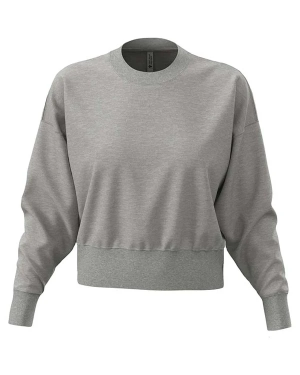 N9087-H001Modisches, kurz geschnittenes Sweatshirt für Damen aus einer schweren Mischung aus gekämmter Baumwolle und recyceltem Polyester, mit bedruckbarem Halbmond, breiten gerippten Bündchen, Kragen und Bund.