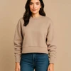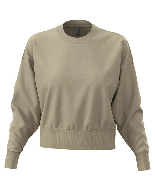 N9087-T001Modisches, kurz geschnittenes Sweatshirt für Damen aus einer schweren Mischung aus gekämmter Baumwolle und recyceltem Polyester, mit bedruckbarem Halbmond, breiten gerippten Bündchen, Kragen und Bund.