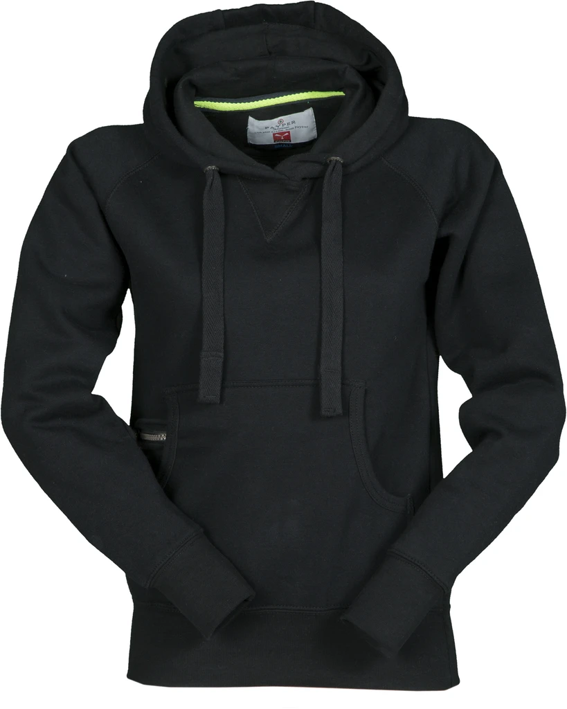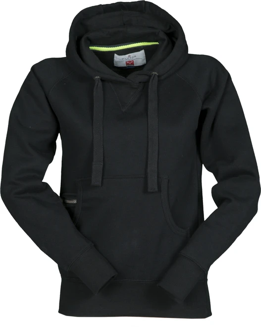 Tailliertes Damen-Sweatshirt mit Kapuze mit zwei Nähten und weißem Kordelzug, Nähten Ton-in-Ton und Metallösen, Raglanärmeln, V-Ziernaht am Ausschnitt, Kängurutaschen, Reißverschlusstäschchen,