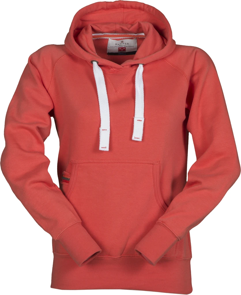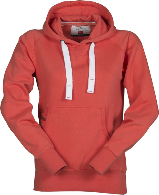 Tailliertes Damen-Sweatshirt mit Kapuze mit zwei Nähten und weißem Kordelzug, Nähten Ton-in-Ton und Metallösen, Raglanärmeln, V-Ziernaht am Ausschnitt, Kängurutaschen, Reißverschlusstäschchen,