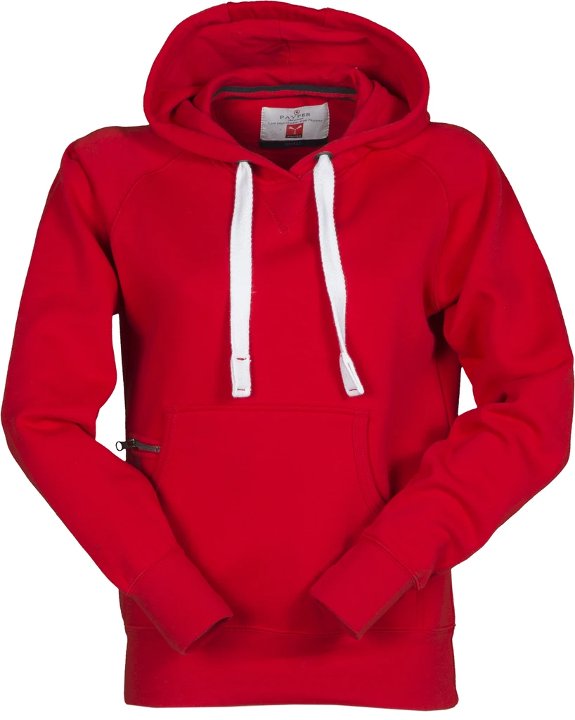 Tailliertes Damen-Sweatshirt mit Kapuze mit zwei Nähten und weißem Kordelzug, Nähten Ton-in-Ton und Metallösen, Raglanärmeln, V-Ziernaht am Ausschnitt, Kängurutaschen, Reißverschlusstäschchen,