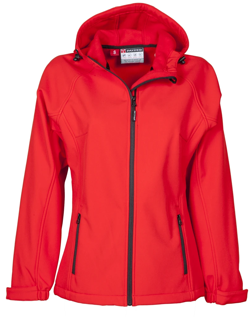 Taillierte Damen-Jacke mit Raglanärmeln, vorgeformter Kapuze mit zwei Nähten und Kordelzug, durchgehendem versiegeltem Reißverschluss, elastischen Ärmelbündchen, zwei Außentaschen mit Reißverschluss