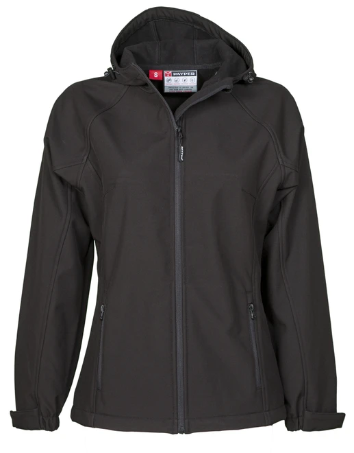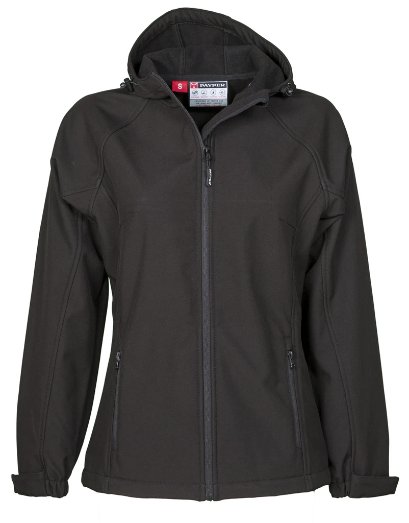 Taillierte Damen-Jacke mit Raglanärmeln, vorgeformter Kapuze mit zwei Nähten und Kordelzug, durchgehendem versiegeltem Reißverschluss, elastischen Ärmelbündchen, zwei Außentaschen mit Reißverschluss