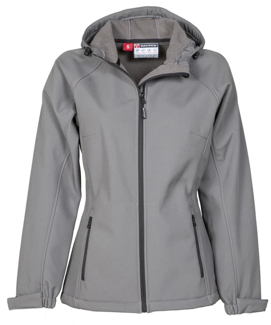 Taillierte Damen-Jacke mit Raglanärmeln, vorgeformter Kapuze mit zwei Nähten und Kordelzug, durchgehendem versiegeltem Reißverschluss, elastischen Ärmelbündchen, zwei Außentaschen mit Reißverschluss