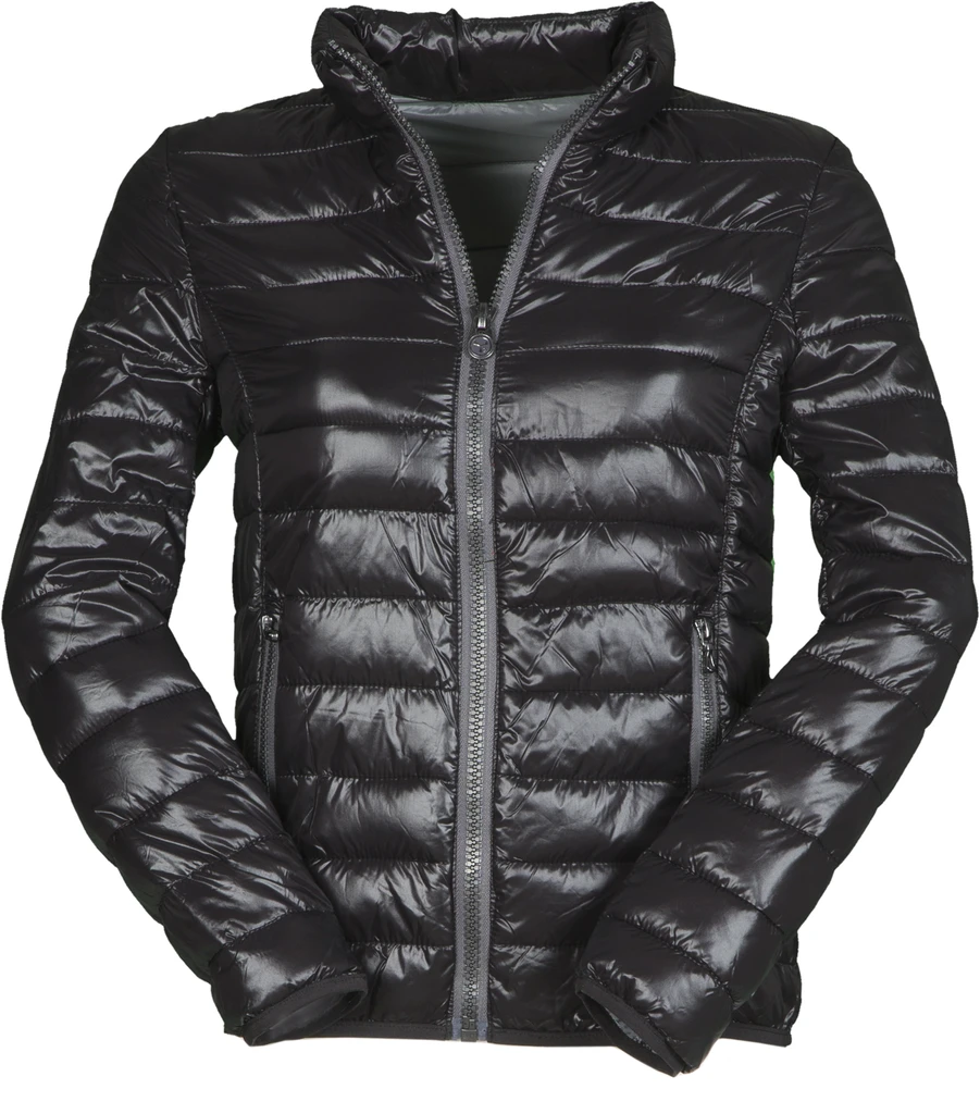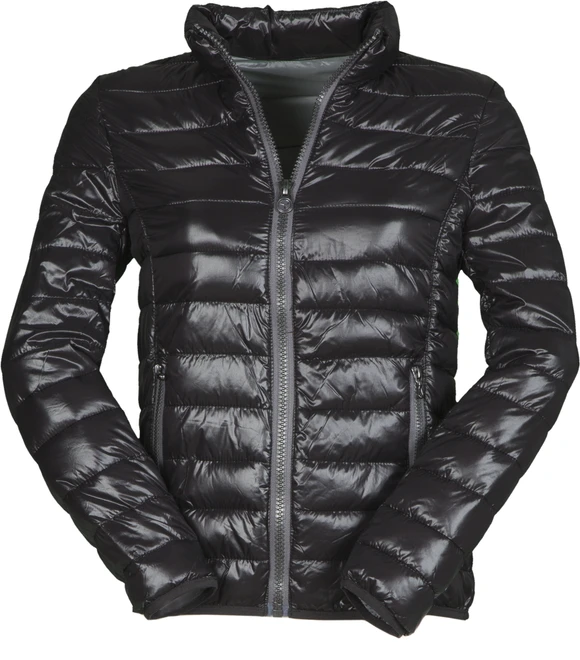 Komfortable Damen-Jacke mit 8 mm SBS-Kunststoffreißverschluss mit Metall-Ziehzug, schmalen Bündchen und Saum, zwei Außentaschen. Gefüttert mit Daunen-Polyester, drei Innentaschen