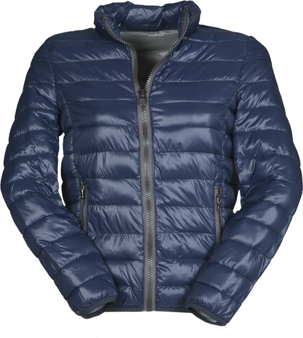 Komfortable Damen-Jacke mit 8 mm SBS-Kunststoffreißverschluss mit Metall-Ziehzug, schmalen Bündchen und Saum, zwei Außentaschen. Gefüttert mit Daunen-Polyester, drei Innentaschen