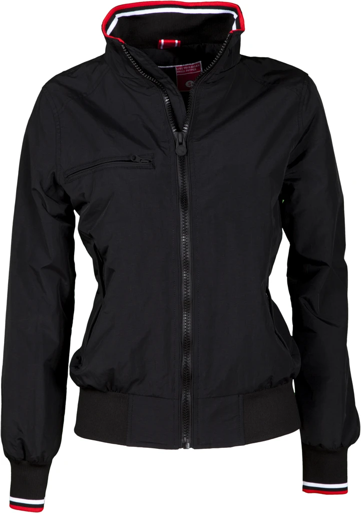 Damen-Jacke mit Rippstrickbündchen an Kragen, Ärmeln und Taille, Profilen in Kontrastfarbe, 3 Außentaschen; Innenseite nicht wattiert, Netzfutter mit 1 Tasche und Reißverschluss zum einfacheren Veredeln mit Druck und Stick
