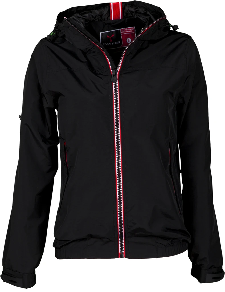 Damenjacke mit Kapuze, elastischem Bund, elastischen Ärmelbündchen und Gummilaschen zur Weitenregulierung, Reißverschluss in Kontrastfarbe, 2 Außentaschen mit verdecktem Reißverschluss; Innenseite nicht wattiert, Netzfutter, 1 Innentasche mit Reißverschluss und Öffnung für Smartphone-Kopfhörer, Reißverschluss am Bund zum einfacheren Veredeln mit Druck und Stick
