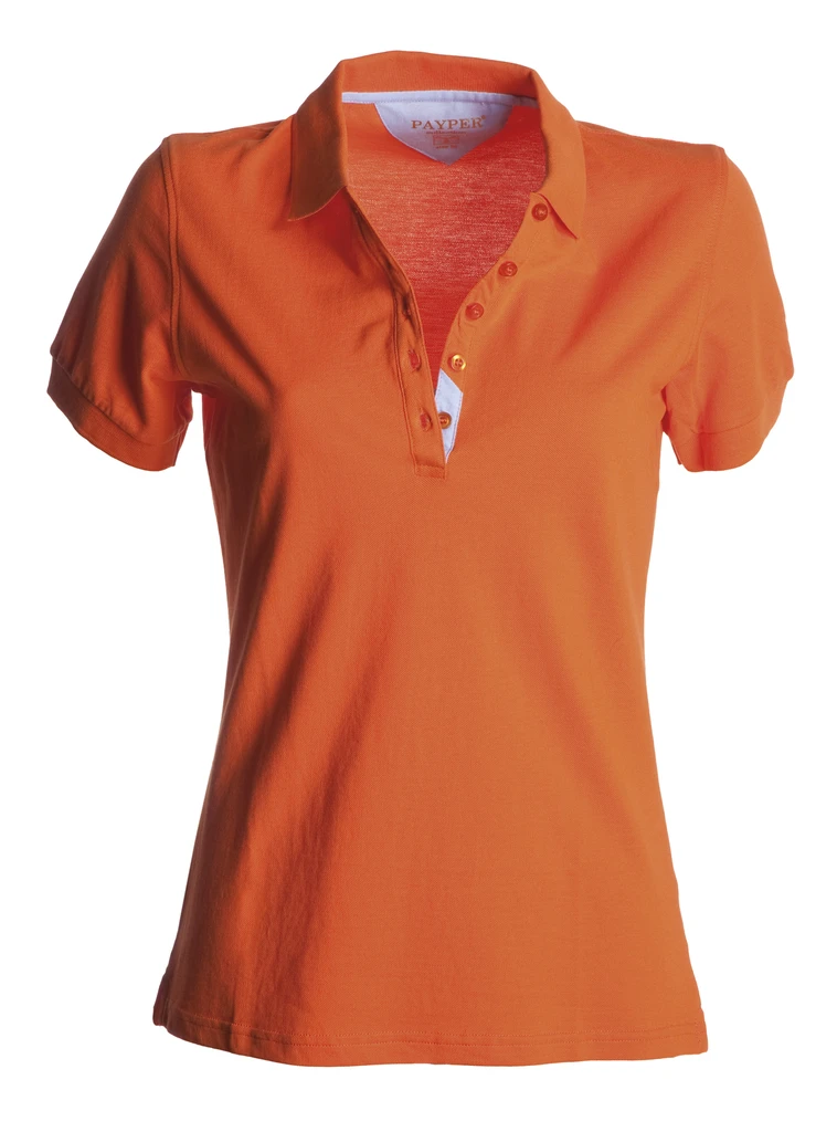 Tailliertes Damen-Polo-Shirt, kurzärmelig, mit 5 Knöpfen Ton-in-Ton mit Perlmutteffekt, Kragen und Ärmelrand aus Feinripp, dezenten, hellblauen Popeline-Einsätzen an der Krageninnenseite, Knopfleiste und an den Seitenschlitzen, Transfer-Etikett, Nackensattel
