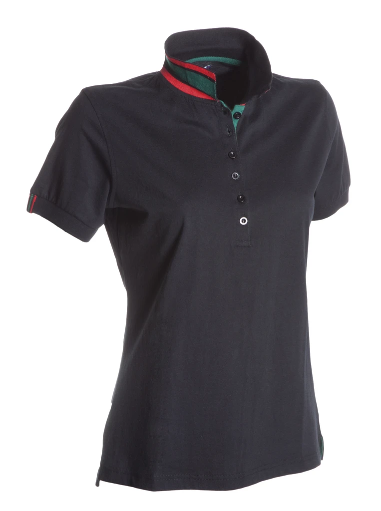 Tailliertes Damen-Polo-Shirt kurzärmelig, mit 6 Knöpfen Ton-in-Ton und Perlmutteffekt, Oberseite des