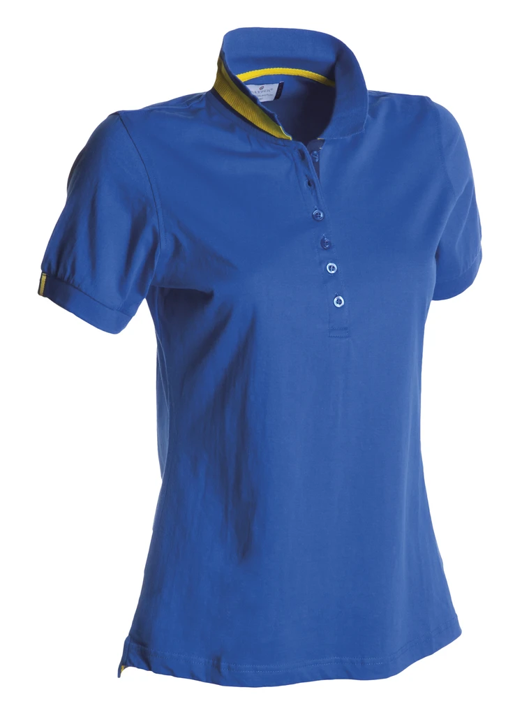 Tailliertes Damen-Polo-Shirt kurzärmelig, mit 6 Knöpfen Ton-in-Ton und Perlmutteffekt, Oberseite des