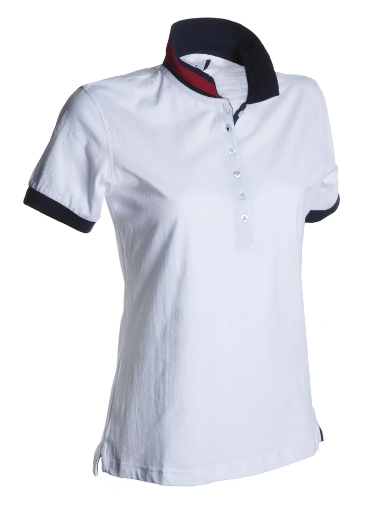 Tailliertes Damen-Polo-Shirt kurzärmelig, mit 6 Knöpfen Ton-in-Ton und Perlmutteffekt, Oberseite des