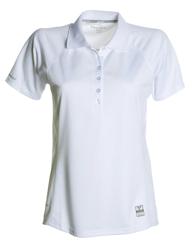 Sportlich-technisches, tailliertes Damen-Polo-Shirt, kurzärmelig, mit 6 Knöpfen Ton-in-