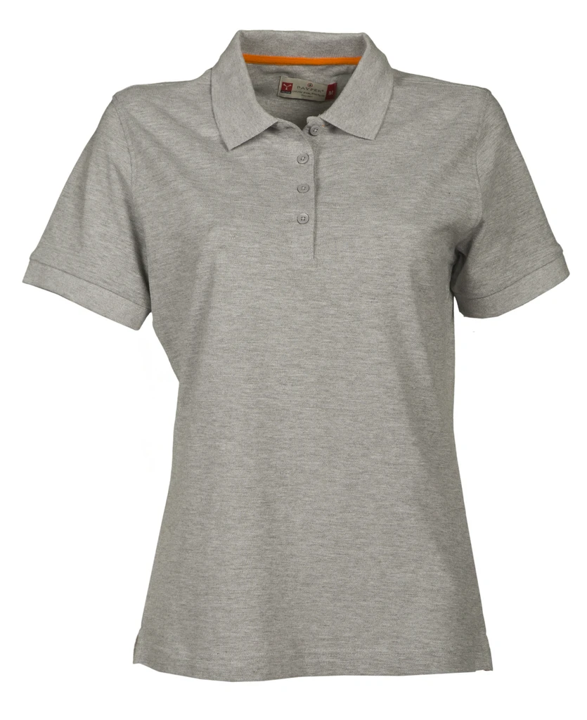 Tailliertes Damen-Polo-Shirt, kurzärmelig, mit 4 Knöpfen Ton-in-Ton mit Perlmutteffekt, Kragen und Ärmelrand aus Feinripp, Seitenschlitzen, Nackenband in Kontrastfarbe, Stretchnähten, seitlichem Verstärkungsband, Nackensattel