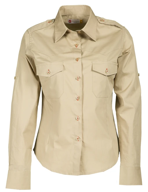 Taillierte Damenbluse aus feinster gekämmter Baumwolle mit Abnähern vorne und hinten, Kragen im italienischen Design, angeschrägten Manschetten mit 2 Knöpfen und einem Knopfloch, sichtbarer Knopfleiste und Knöpfen Ton-in-Ton, Knopflöchern in roter Kontrastfarbe (außer bei weißen Modell), Sattel auf der Vorderseite (außer bei weißem Modell), Schulterklappen, zwei Brusttaschen mit Patte, Befestigungsschlaufe mit Knopf am Arm zum praktischen Hochkrempeln der Ärmel