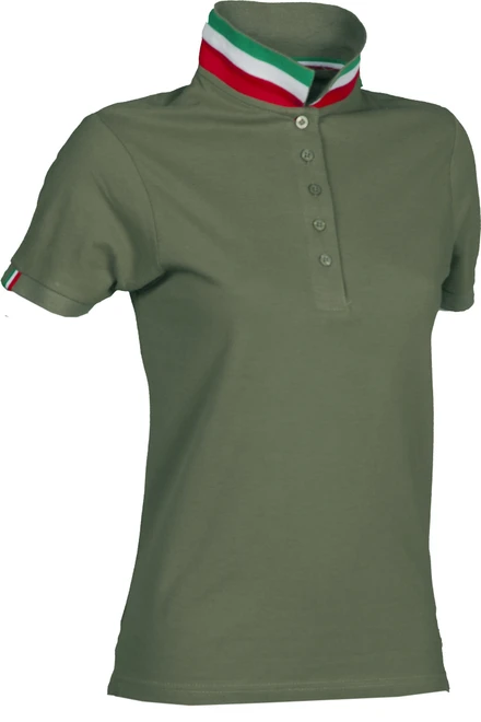 Tailliertes Damen-Polo-Shirt, kurzärmelig, mit 5 Knöpfen Ton-in-Ton und Perlmutteffekt, Oberseite des Kragens Ton-in-Ton, Unterseite mit den