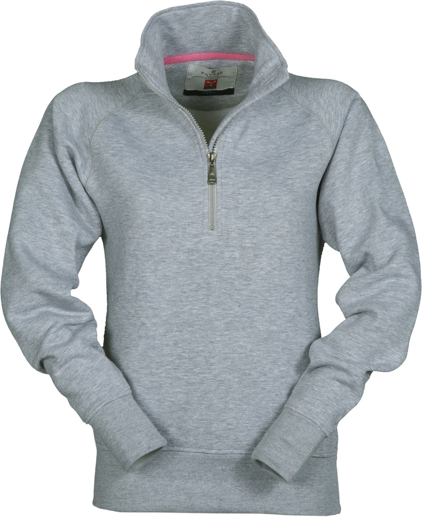 Damen-Sweatshirt mit kurzem gleichfarbigem Reißverschluss aus Kunststoff mit Metallschieber, Raglanärmeln, elastischem Feinripp an Ärmeln und Taille, verstärkten Nähten