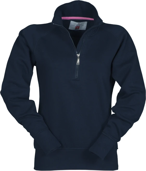 Damen-Sweatshirt mit kurzem gleichfarbigem Reißverschluss aus Kunststoff mit Metallschieber, Raglanärmeln, elastischem Feinripp an Ärmeln und Taille, verstärkten Nähten