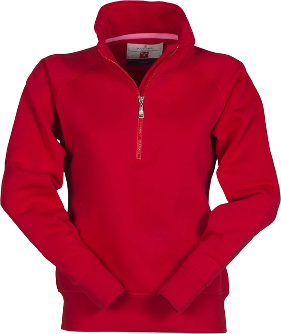 Damen-Sweatshirt mit kurzem gleichfarbigem Reißverschluss aus Kunststoff mit Metallschieber, Raglanärmeln, elastischem Feinripp an Ärmeln und Taille, verstärkten Nähten
