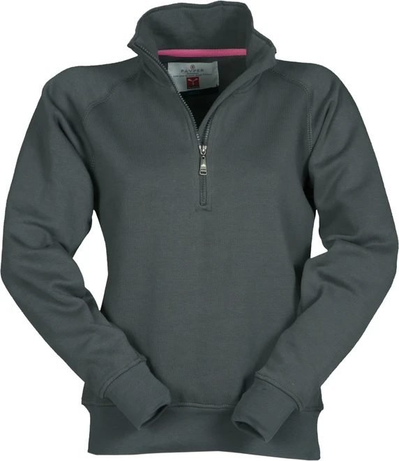 Damen-Sweatshirt mit kurzem gleichfarbigem Reißverschluss aus Kunststoff mit Metallschieber, Raglanärmeln, elastischem Feinripp an Ärmeln und Taille, verstärkten Nähten