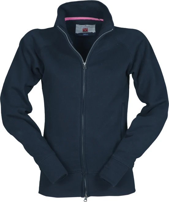 Damen-Sweatjacke mit durchgehendem, verdecktem Zwei-Wege-Reißverschluss aus Kunststoff mit Metallschieber, Raglanärmeln, zwei Taschen mit verdeckten Reißverschlüssen, elastischem Feinripp an Ärmeln und Taille, verstärkten Nähten