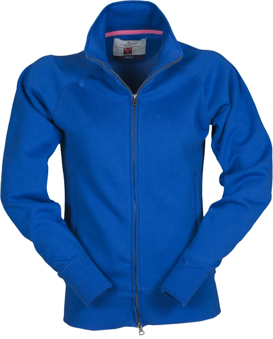 Damen-Sweatjacke mit durchgehendem, verdecktem Zwei-Wege-Reißverschluss aus Kunststoff mit Metallschieber, Raglanärmeln, zwei Taschen mit verdeckten Reißverschlüssen, elastischem Feinripp an Ärmeln und Taille, verstärkten Nähten