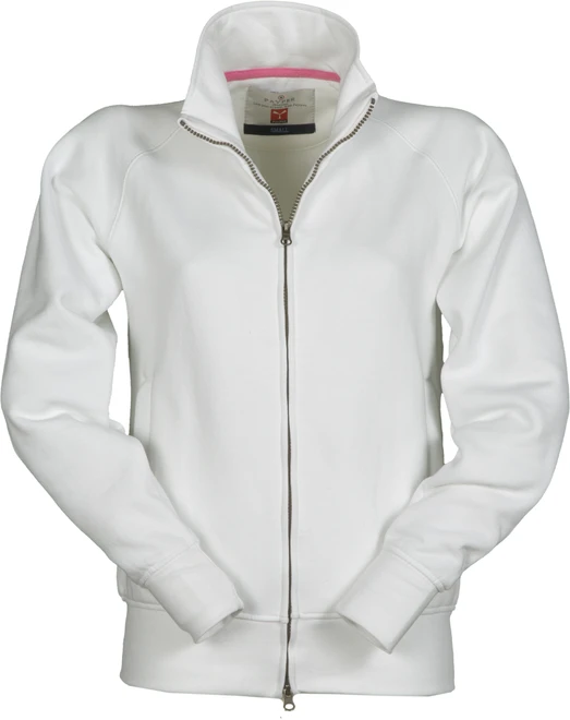 Damen-Sweatjacke mit durchgehendem, verdecktem Zwei-Wege-Reißverschluss aus Kunststoff mit Metallschieber, Raglanärmeln, zwei Taschen mit verdeckten Reißverschlüssen, elastischem Feinripp an Ärmeln und Taille, verstärkten Nähten