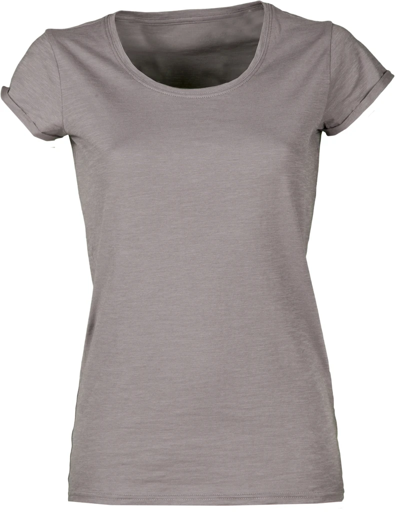 Tailliertes Damen-T-Shirt, kurzärmelig, mit tiefem Rundhalsausschnitt, schmalem 1 cm Halsabschluss