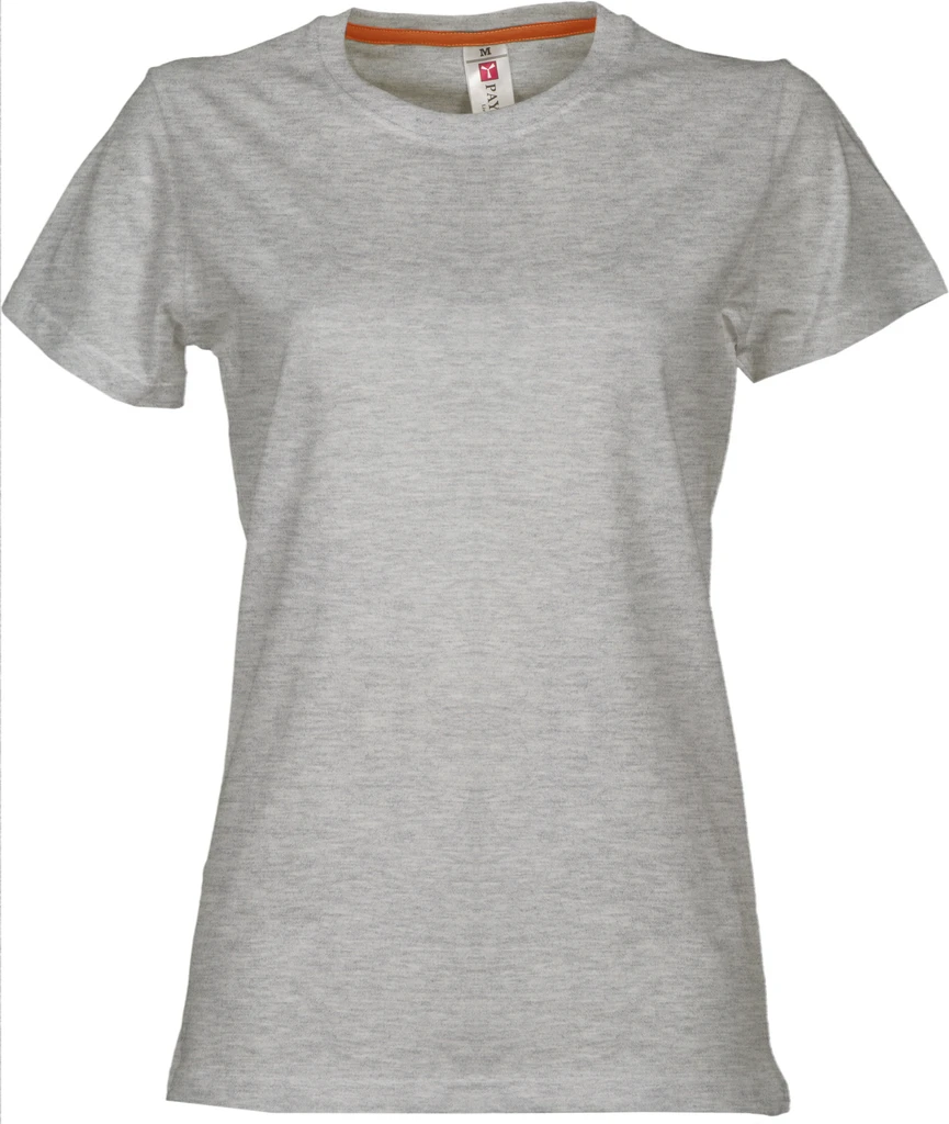 Tailliertes Damen-T-Shirt mit Rundhalsausschnitt, kurzärmelig, Feinripp-Kragen 1,5 cm aus Spandex-Mischgewebe mit Kappnaht an der Vorderseite, Verstärkungsband in Kontrastfarbe von Schulter