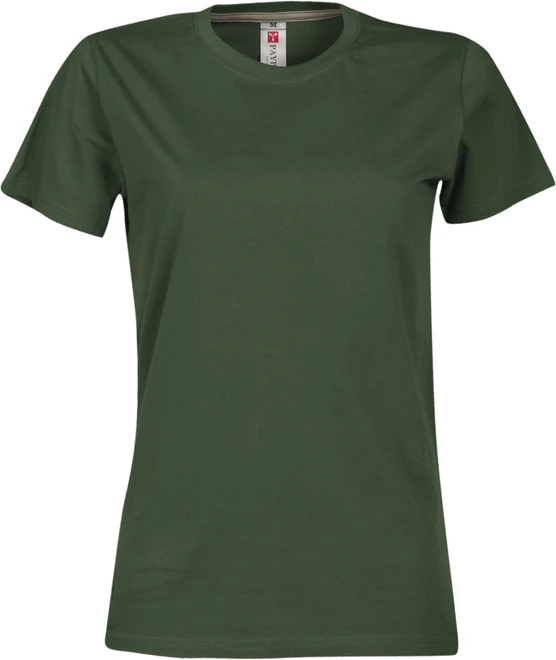 Tailliertes Damen-T-Shirt mit Rundhalsausschnitt, kurzärmelig, Feinripp-Kragen 1,5 cm aus Spandex-Mischgewebe mit Kappnaht an der Vorderseite, Verstärkungsband in Kontrastfarbe von Schulter zu Schulter, das im Kragen sichtbar ist, Stretchnähten, Seitennaht