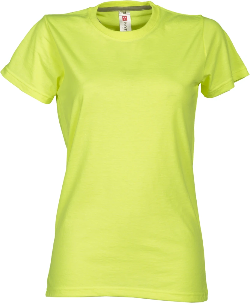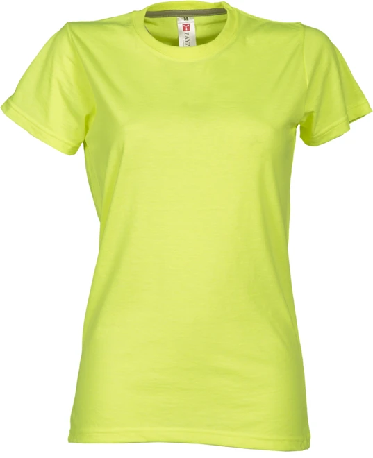 Tailliertes Damen-T-Shirt mit Rundhalsausschnitt, kurzärmelig, Feinripp-Kragen 1,5 cm aus Spandex-Mischgewebe mit Kappnaht an der Vorderseite, Verstärkungsband in Kontrastfarbe von Schulter