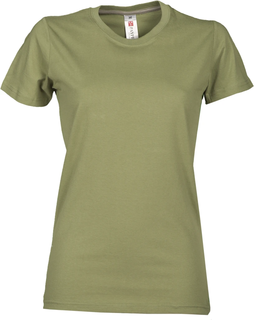 Tailliertes Damen-T-Shirt mit Rundhalsausschnitt, kurzärmelig, Feinripp-Kragen 1,5 cm aus Spandex-Mischgewebe mit Kappnaht an der Vorderseite, Verstärkungsband in Kontrastfarbe von Schulter