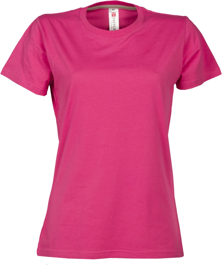 Tailliertes Damen-T-Shirt mit Rundhalsausschnitt, kurzärmelig, Feinripp-Kragen 1,5 cm aus Spandex-Mischgewebe mit Kappnaht an der Vorderseite, Verstärkungsband in Kontrastfarbe von Schulter