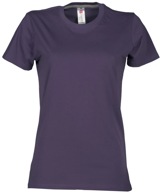Tailliertes Damen-T-Shirt mit Rundhalsausschnitt, kurzärmelig, Feinripp-Kragen 1,5 cm aus Spandex-Mischgewebe mit Kappnaht an der Vorderseite, Verstärkungsband in Kontrastfarbe von Schulter