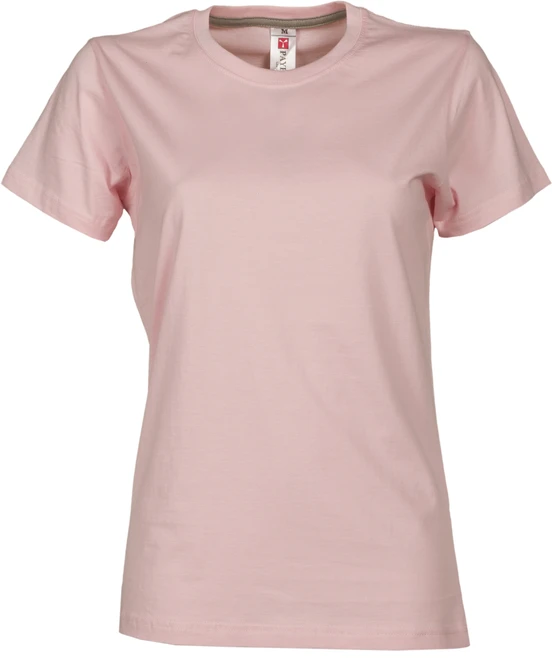 Tailliertes Damen-T-Shirt mit Rundhalsausschnitt, kurzärmelig, Feinripp-Kragen 1,5 cm aus Spandex-Mischgewebe mit Kappnaht an der Vorderseite, Verstärkungsband in Kontrastfarbe von Schulter