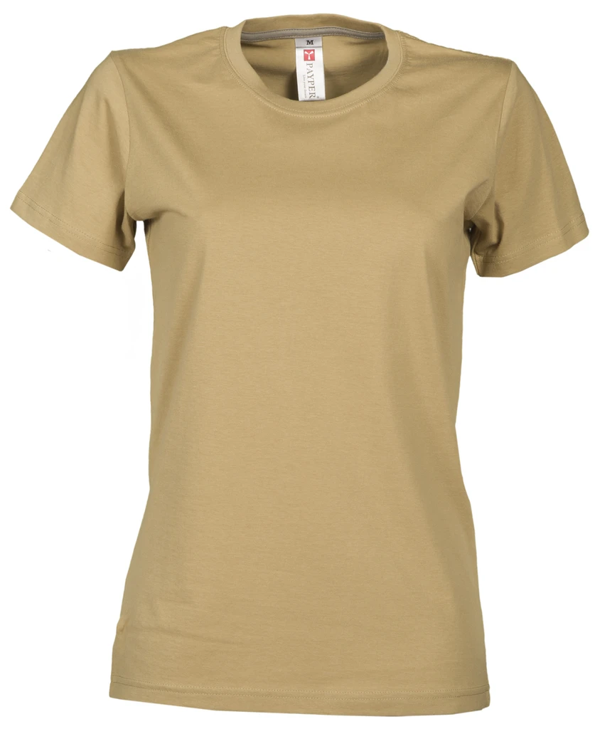 Tailliertes Damen-T-Shirt mit Rundhalsausschnitt, kurzärmelig, Feinripp-Kragen 1,5 cm aus Spandex-Mischgewebe mit Kappnaht an der Vorderseite, Verstärkungsband in Kontrastfarbe von Schulter