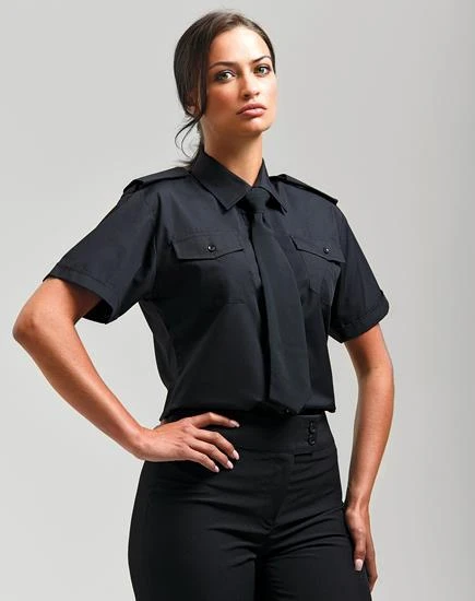 Für diejenigen, die eine verbindlichere Herangehensweise an ihre Arbeitsuniform benötigen, bietet dieses Kurzarmhemd Laschen an den Schultern zum Anbringen von Schulterklappen (PR715) und der versteifte Kragen erleichtert das Anbringen einer Krawatte zum Anstecken (PR711).