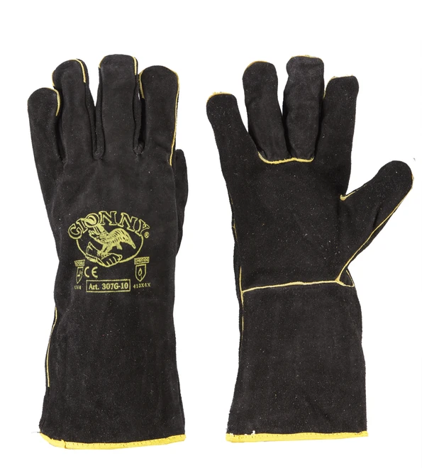 Rindspaltlederhandschuhe, schwer entflammbar, 35 cm, Stofffutter - Eigenschaften: weich, stark, widerstandsfähig - Stärken: Komfort, einfache Handhabung, Griffigkeit, Schutz, Präzision - Anwendungsbereiche: Präzisionsschweißen und schwere Handhabung mit heißem , entgratetes Material