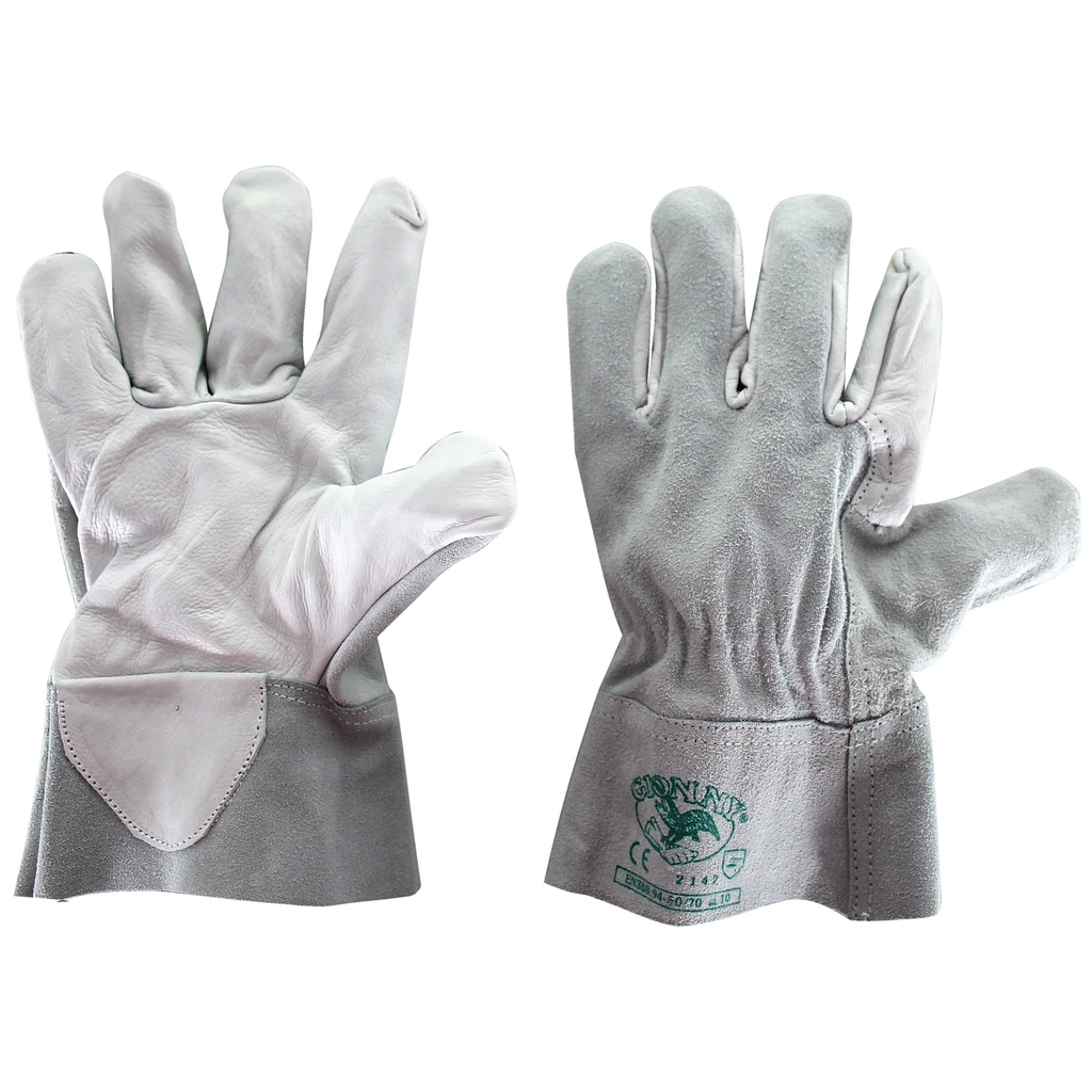 Rindslederhandschuhe mit geteilter Lederrückseite - 7 cm Ledermanschette; Eigenschaften: weich, stark, widerstandsfähig; Stärken: Komfort, einfach zu bedienen; Anwendungsgebiete: allgemeine Handhabung bei trockenen Bedingungen