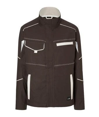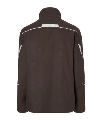 Elastische, leichte Canvas-Qualität, Perfekte, bequeme Passform durch Elasthananteil und ergonomische Schnittführung, Stehkragen innen mit weichem Fleece, Ergonomisch geformte Ärmel, Durchgehend unterlegter Reißverschluss mit Windschutzblende und Kinnschutz, Innenliegende Armbündchen, Seitentaschen, Brusttasche und Innentasche mit Reißverschluss, Brusttasche mit Klappe und Klettverschluss, Handytasche innen, Reflexelemente am Ärmel und im Rückenteil, 60° waschbar, trocknergeeignet, Knöpfe und Reißverschlüsse: Um Beschädigungen am zu bearbeitenden Produkt zu vermeiden, sind alle Knöpfe und Reißverschlüsse verdeckt verarbeitet.